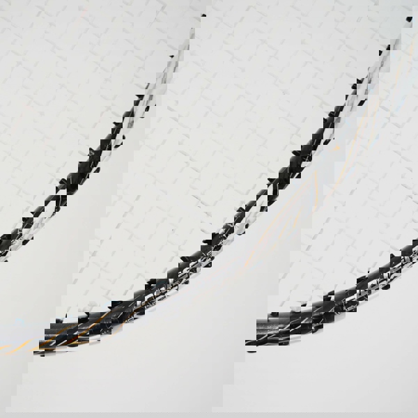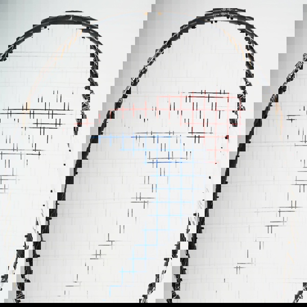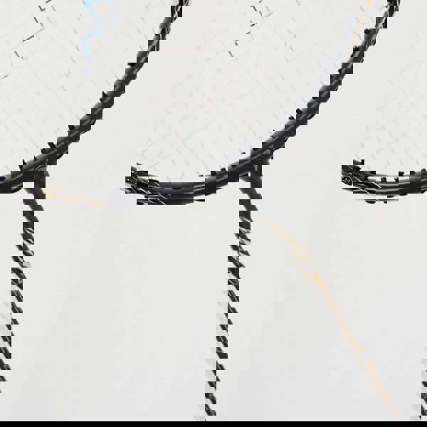 素材はHigh Modulus Graphite。85g。硬めのシャフトとバランスポイント300mmが生み出す、ブレのないパワー伝達。ボックスフレームがMAXテンション29ポンドを受け止め、高テンションでもフレームの安定性と耐久性を保つ。硬く、速く、正確に——スマッシュで押し切るためのラケット。